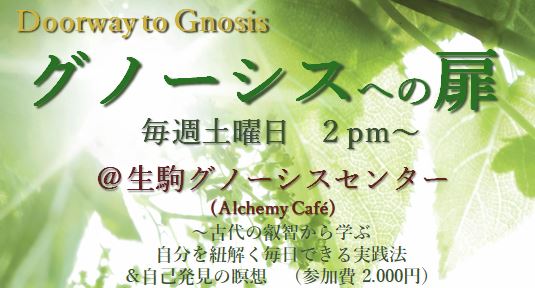 場所:生駒グノーシスセンター (生駒市門前町12-1) 日時:4月18日(土)2pm~ 毎週土曜日(参加費 2000円)